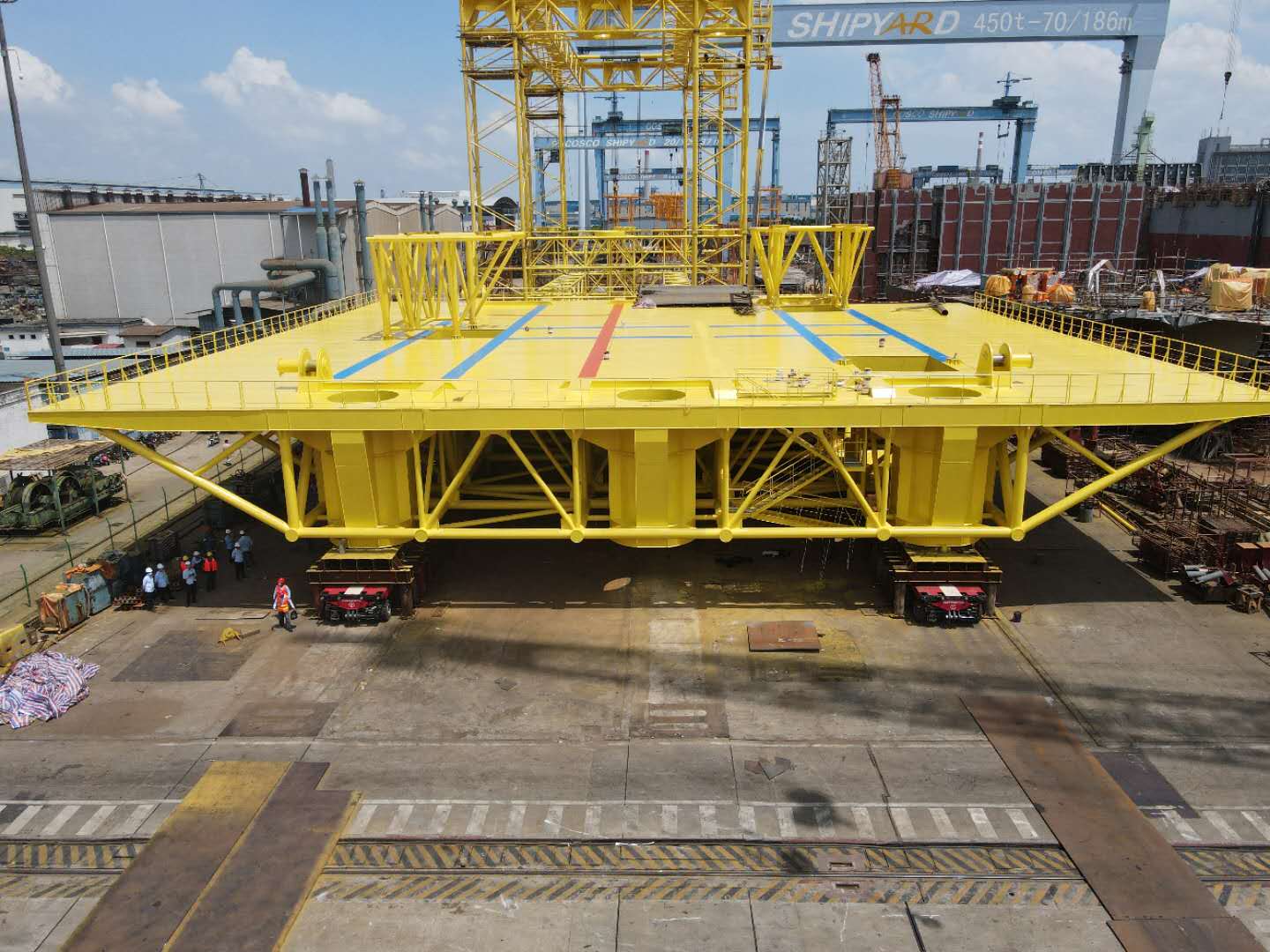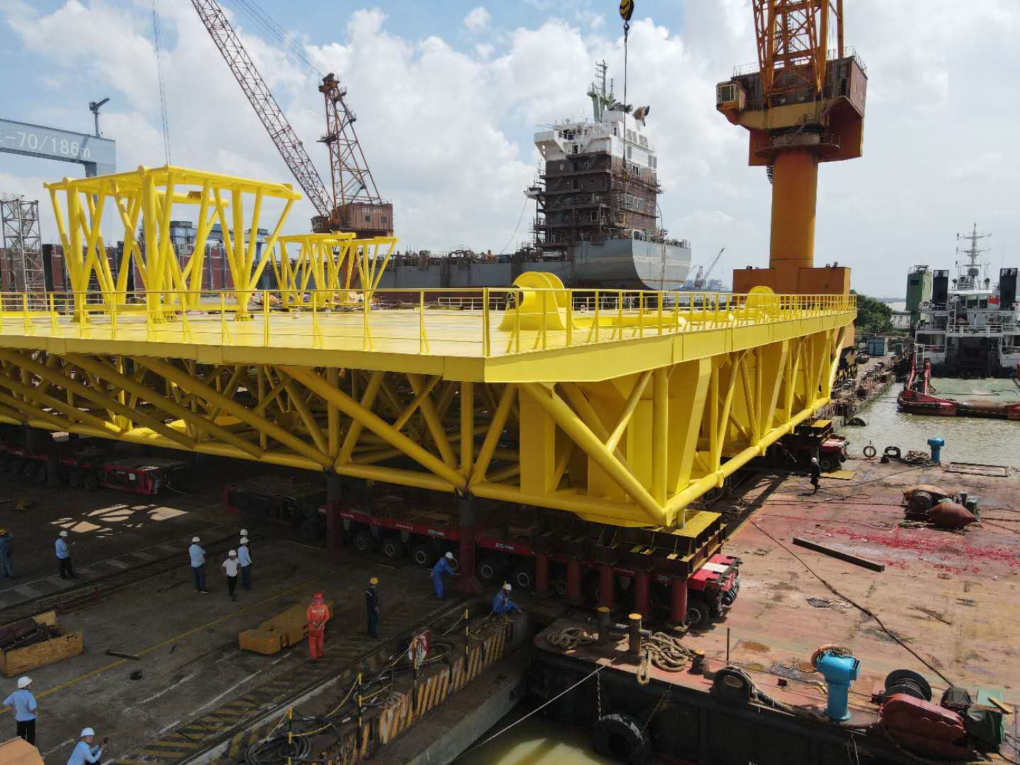 7月12日下午2點,隨著保利長大多樁穩(wěn)樁平臺項目第4套導向架順利完成滾裝裝船工作,標志該項目順利完工。保利長大多樁穩(wěn)樁平臺項目施工過程中,為了滿足業(yè)主生產需求,公司把第3套上平臺和第4套導向架結構件放在公司位于東莞的中遠廠區(qū)進行制作及總組。